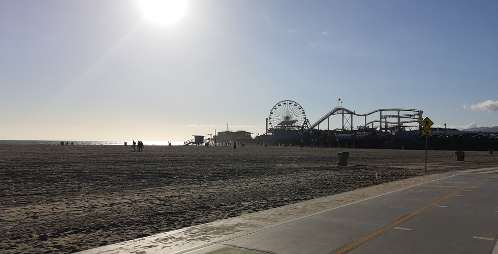 Nous avons passé tout notre après-midi a la plage, sur le ponton des où il y a les manèges et la fin de la route 66. Il faisait très beau, mais il y avait énormément de vent. J'ai eu le plaisir de mettre mes petits pieds dans l'océan, mais c'était GELÉ! Nous avons aussi profité du coucher de soleil sur l'océan. C'était époustouflant! Le petit plus c'est qu'il n'y avait pas beaucoup de monde, car nous sommes allés début mars!